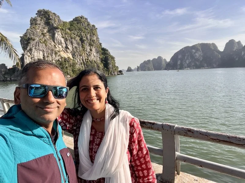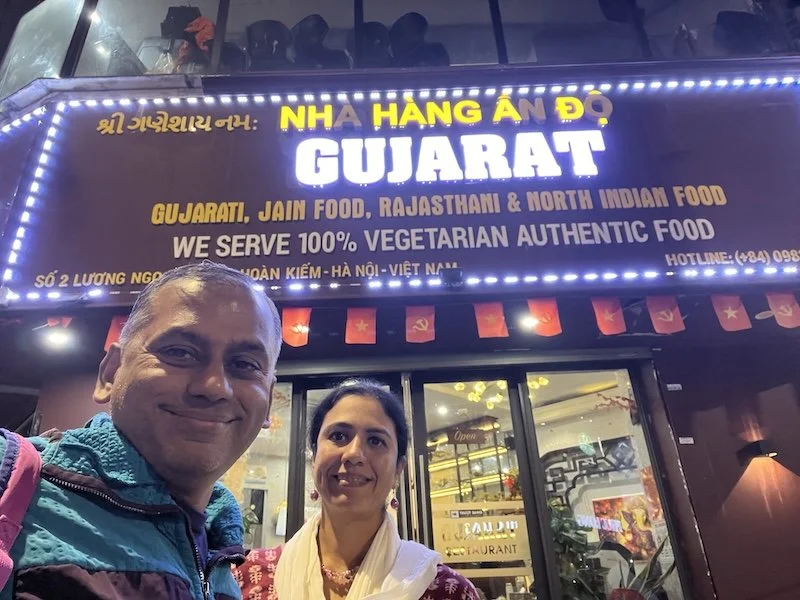 There was no direct flight we could find. So we went SFO -> Seoul , Seoul-> Ho Chi Minh city with a very tight connection on Korean air (gladly we made it as did our luggage). We had a 6 hour wait in Ho Chi Minh city and took a taxi to a airport hotel (5 min ride from the airport). We took a shower, had some wagh bakri chai at 3AM local time and took a 45 min power nap, charged phones and were back in the airport to check in bags on a domestic flight in Vietjet to Hanoi.