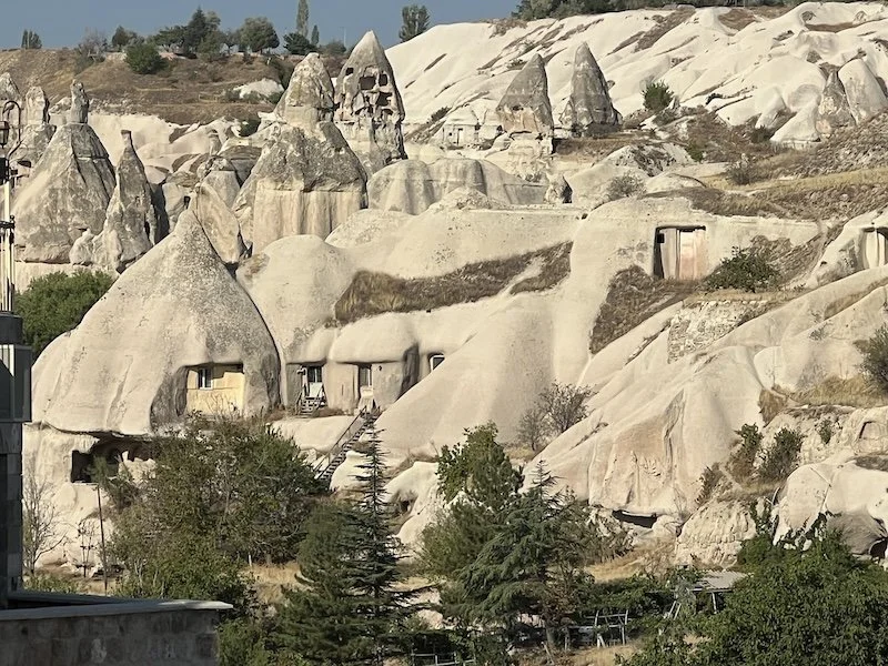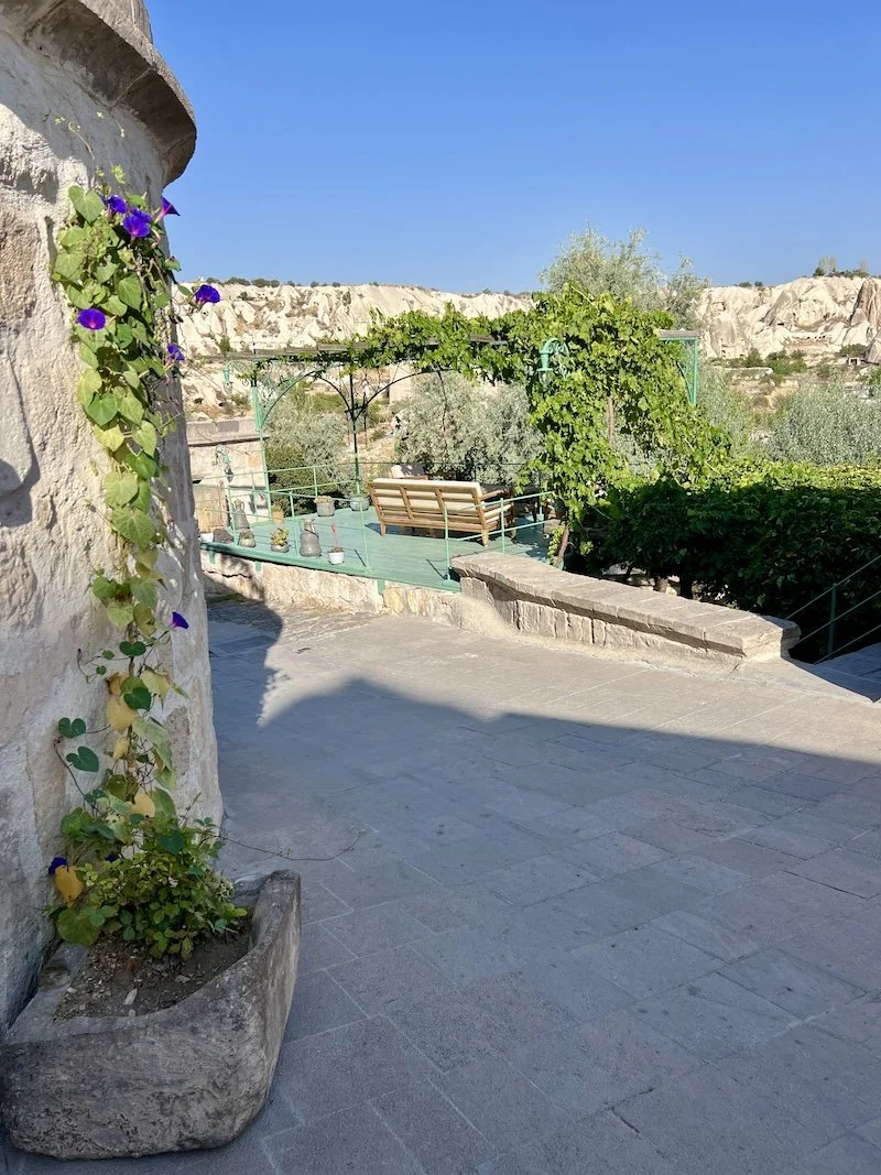 We took some pictures in the verandah of the hotel. We have to say that this was a unique experience staying in a cave. The Kelebek Cave Hotel was excellent. The food was great. The rooms were good. The service was excellent. It is on top of the hill so everytime you walk down, you get quite a workout walking back up. All said and done, if you are a fit person, this is an amazing place to stay. Strongly recommend it.