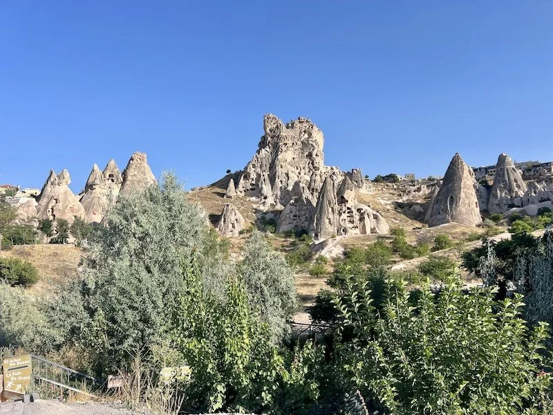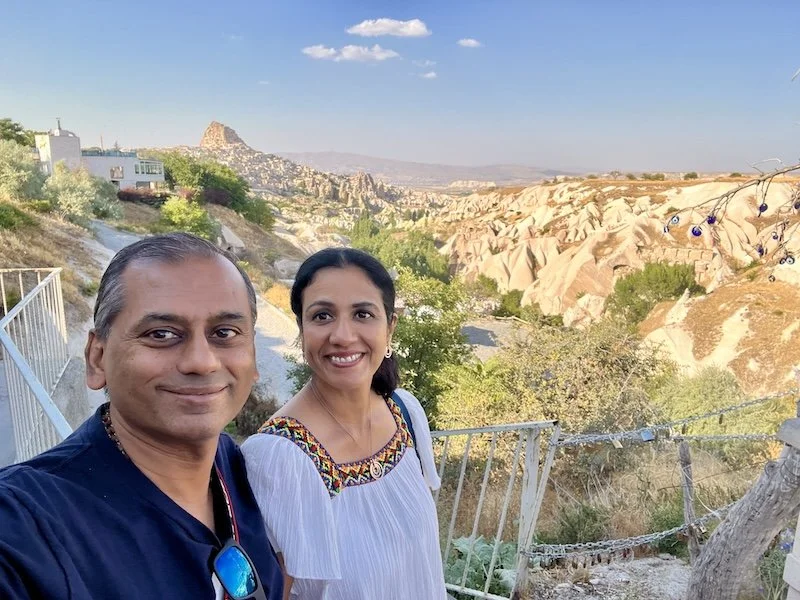 We took some pictures in the verandah of the hotel. We have to say that this was a unique experience staying in a cave. The Kelebek Cave Hotel was excellent. The food was great. The rooms were good. The service was excellent. It is on top of the hill so everytime you walk down, you get quite a workout walking back up. All said and done, if you are a fit person, this is an amazing place to stay. Strongly recommend it.