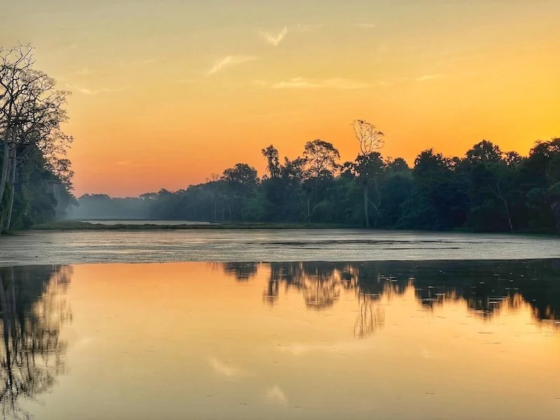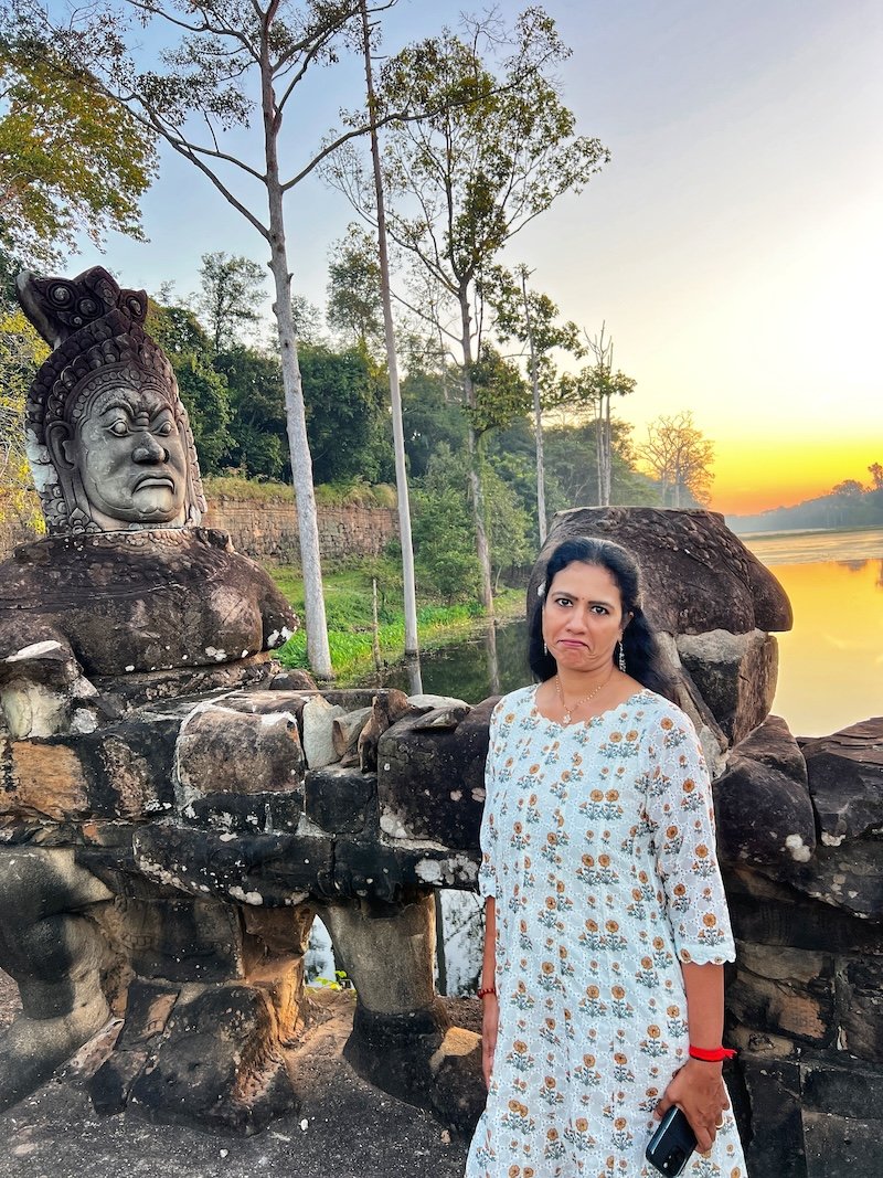 Our driver was good. He took us super fast to the south gate at Angkor Thom complex to see the sunrise above the forest and hit the statutes at the gate. It was an amazing experience. Got a lot of good pictures and got a timelapse of the sun coming up above the forest!