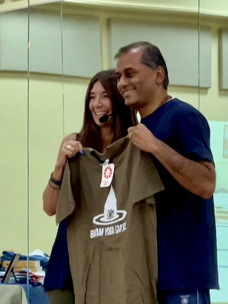 We went there to smiling faces. Bikram Yoga San Jose has been home for me for 15 years now. Was not going to miss this. Got to pose with my poster to everyone’s amusement.