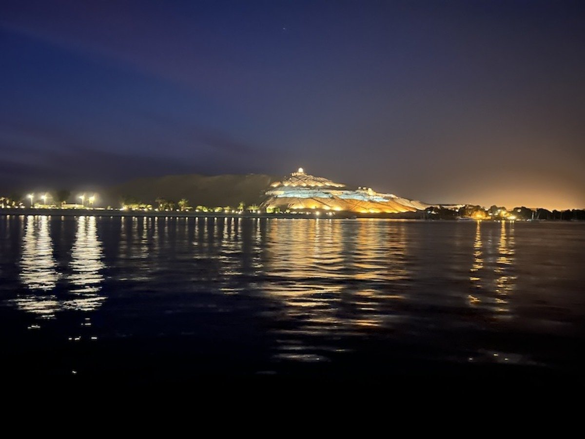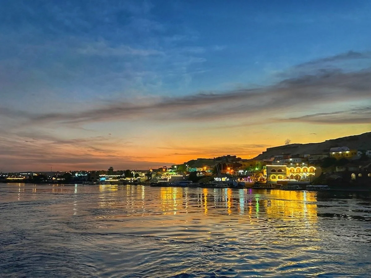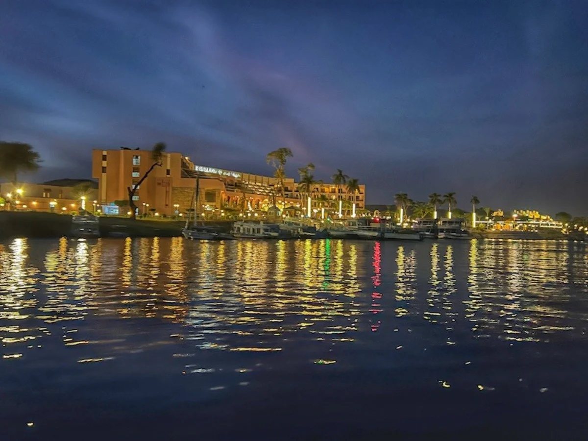We said bye to the village and went back to our cruise boat watching the reflected lights from the village in the Nile waters..