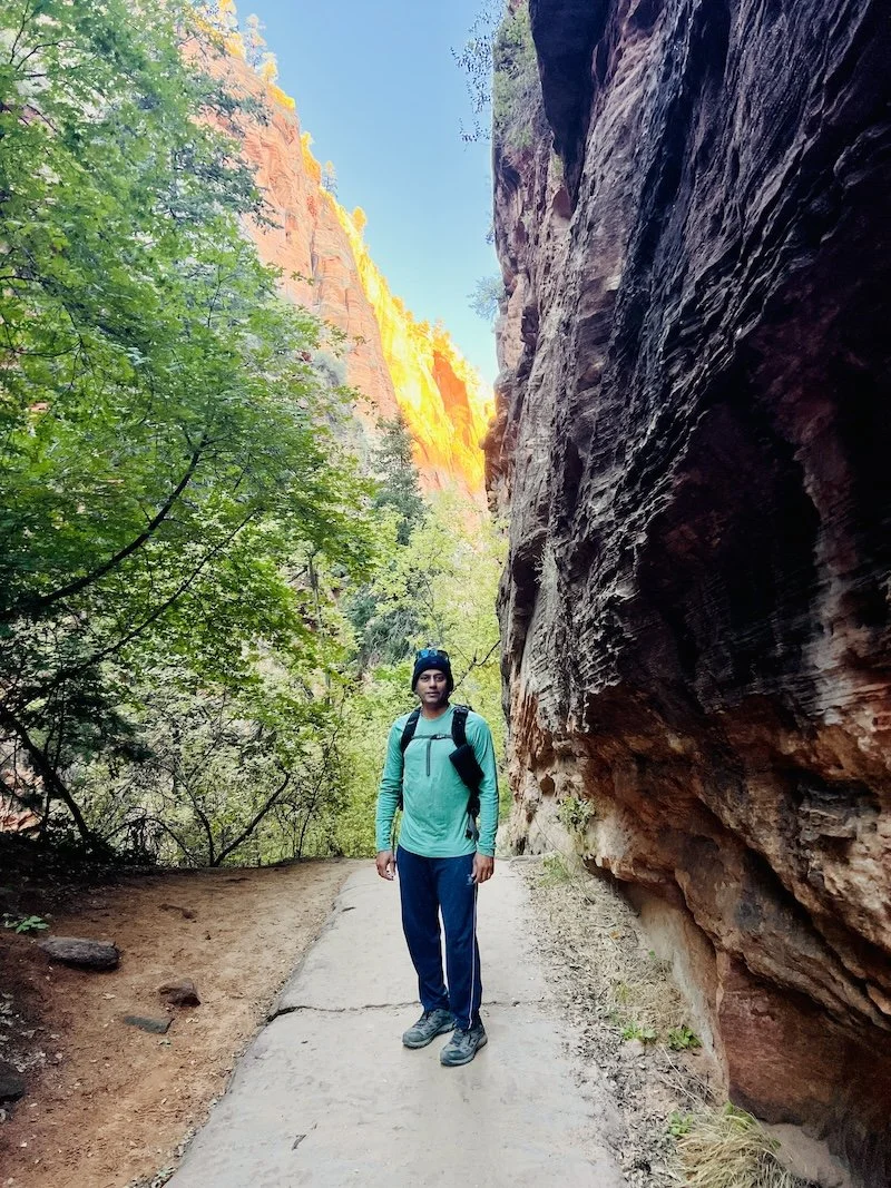 I was craving hot cocoa, but the Zion lodge cafe did not have any. Ate some Parle G, lemon rice and chips to more than make up for it. Then we decided to go to Emerald pools. Our knees were shaky to start with but all of us decided to go.