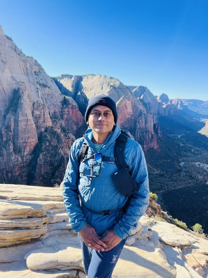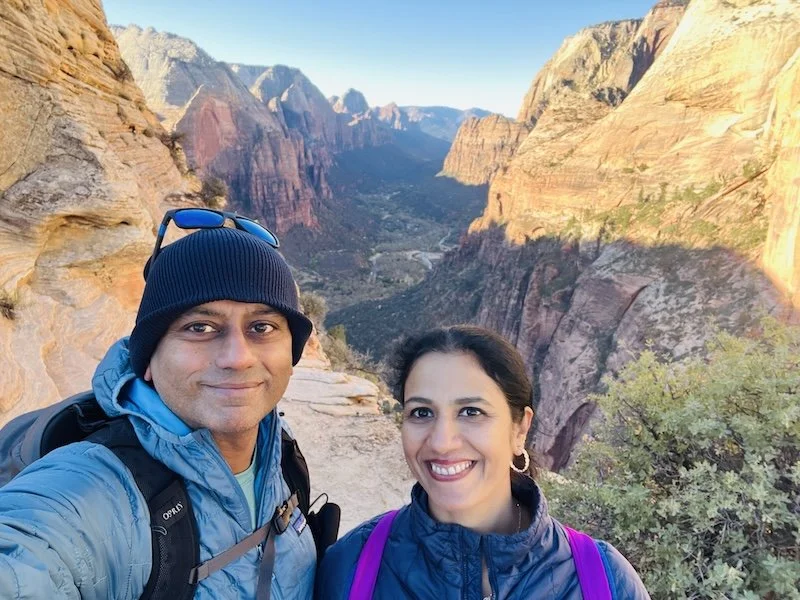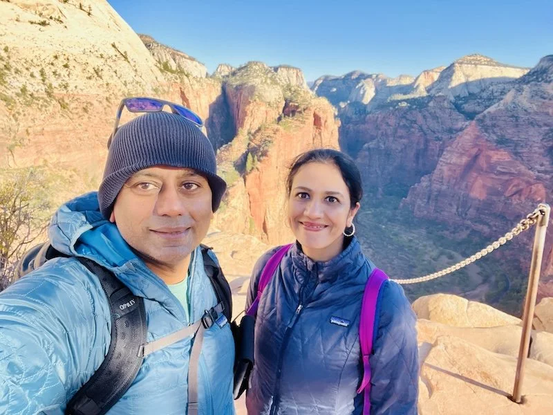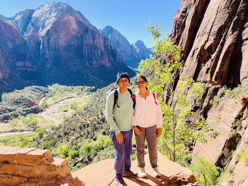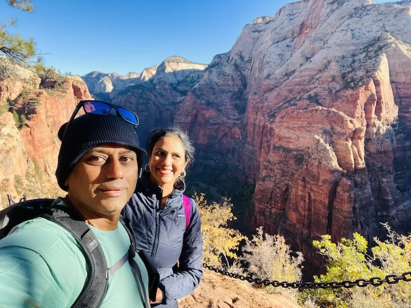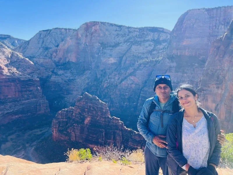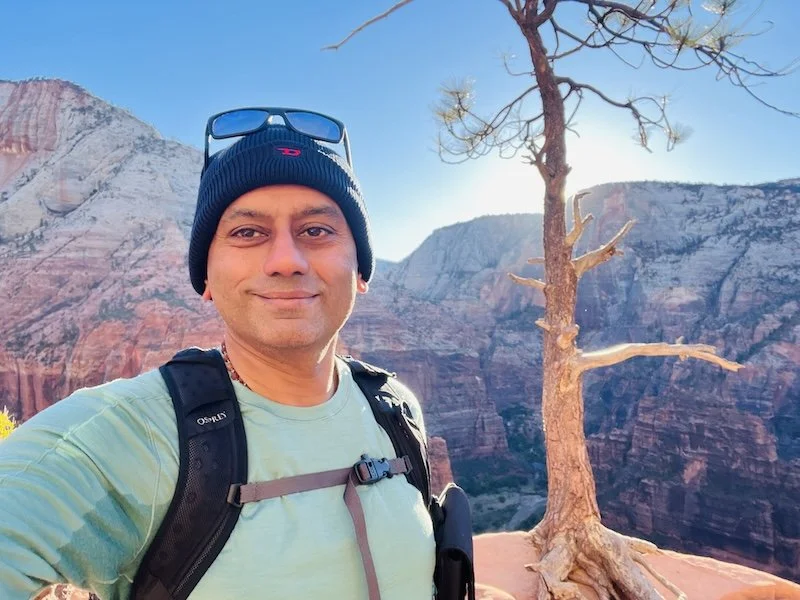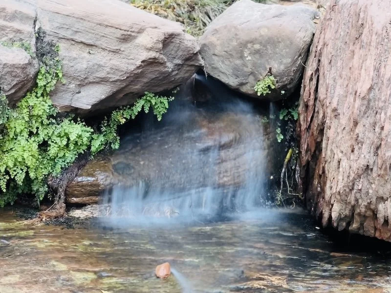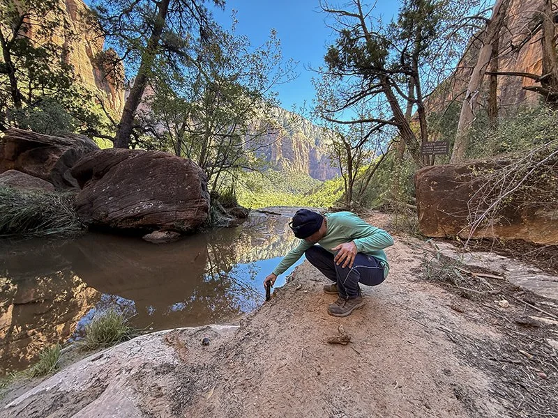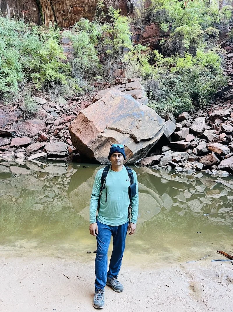 We made it to the waterfall area, but there was not much water. We walked behind the falls in red slushy mud and the ladies decided to call it a day. They wanted to go make tik tok reels in the lawns of the lodge. A brave man decided to be their reels photographer while two of us decided to go all the way to the Upper Emerald pool. Our local trail guides aka ladies said “it is only another 0.3 miles.. you two should be back in another 30 minutes”. Turned out it was much more than that and the last part was pretty steep. We slowed down and kept talking about random things and made it to the lower, middle and upper pools and took photos.